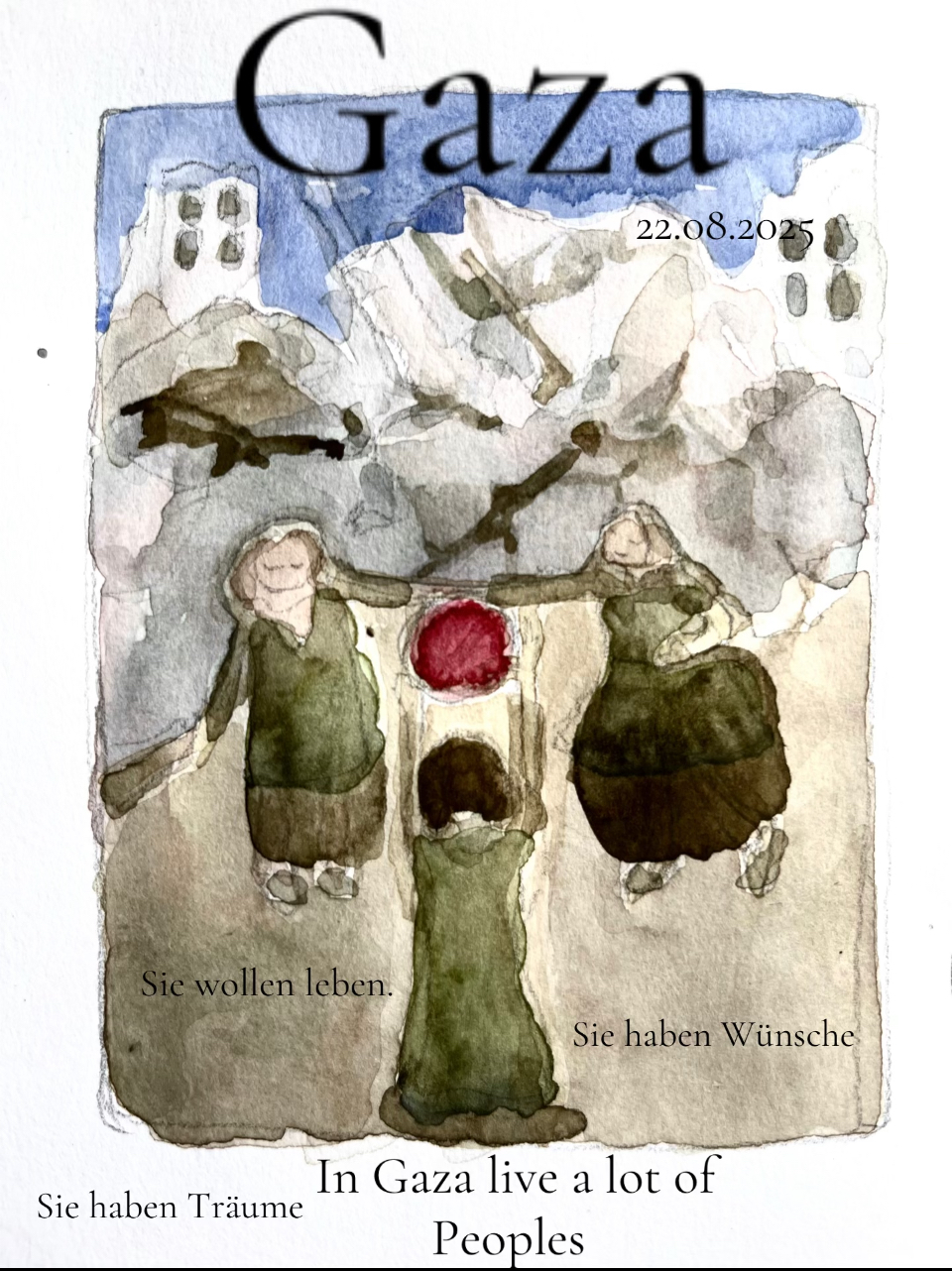In den letzten zwei Jahren habe ich mich täglich mit der Zerstörung in Gaza auseinander gesetzt . Die Gräueltaten musste ich festhalten, für zukünftige Generationen. Wie soll man Kindern erklären was passiert ist, wie die Welt einen Völkermord in den Sozialen Medien sieht ohne diese zu traumatisieren. Ich habe die Bilder Kindgerecht gestaltet, so das diese Zeit nie vergessen wird.